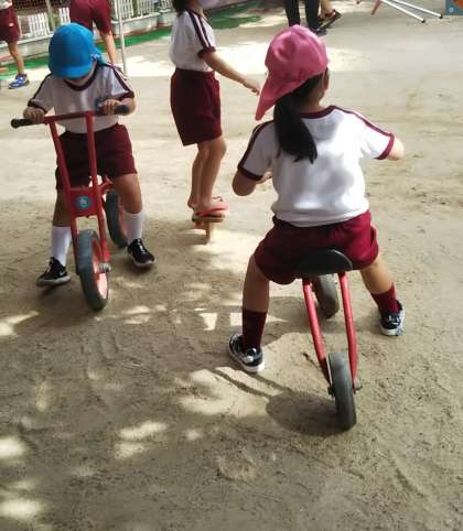虫探しや、スクーターでも楽しそうに遊んでいました。