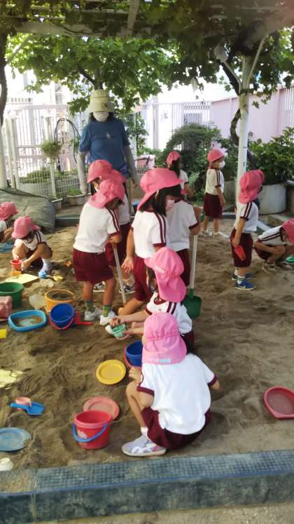 今日は、さくら組がほとんど砂場に集中!心地良い木陰の下で楽しそうですね♪