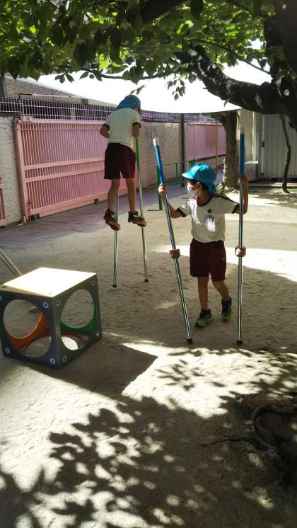 今日も竹馬や一輪車を頑張っています!かっこいいですね♪ファイトー!!