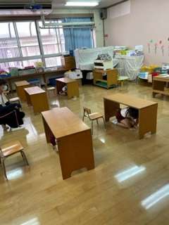 本日、9月2日13時半から、預かり保育の子どもたちが大阪880万人訓練に参加しました。