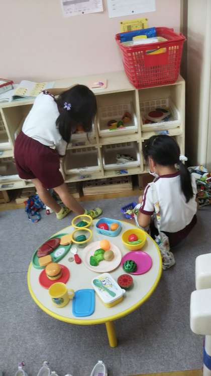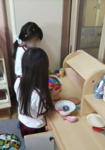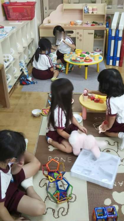 預かりでままごとを楽しんでいます。途中で、みんなが集まりだしました。