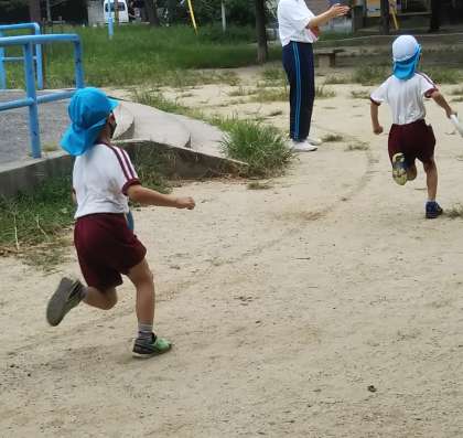今日はあやめ組が近隣の公園にいきました。広い場所で思い切り走ってリレーを楽しみました!