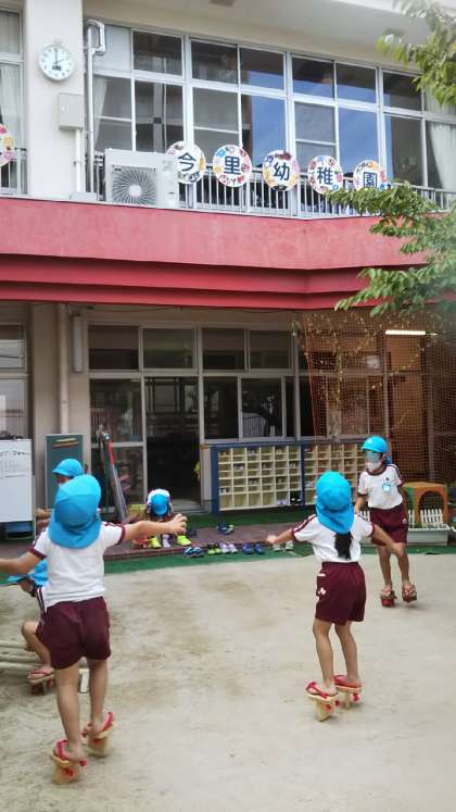 園庭では下駄をしていた友達が屋上を見上げて応援をしていました☆