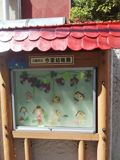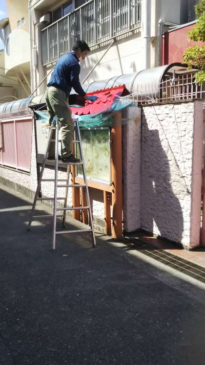 主事さんが、園の掲示板の屋根をきれいにしてくれました。