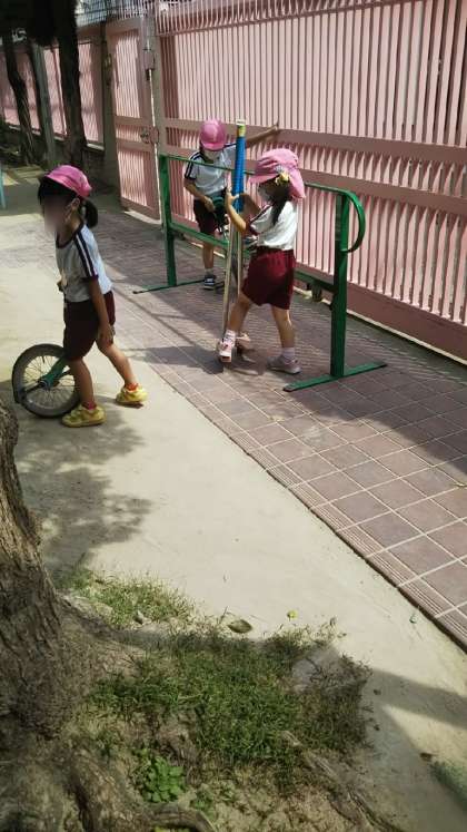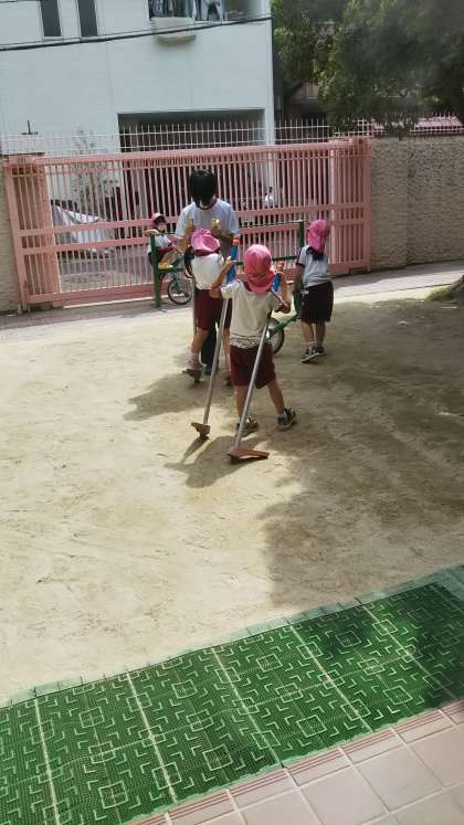 今日はさくら組が一輪車や竹馬にチャレンジしていました。
