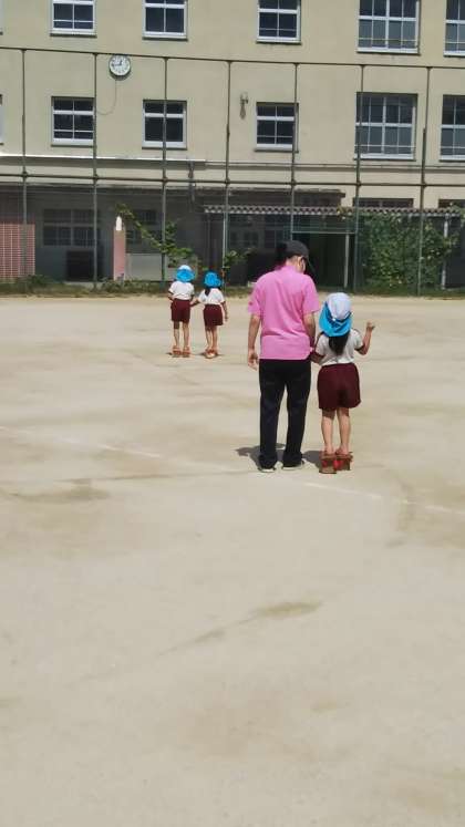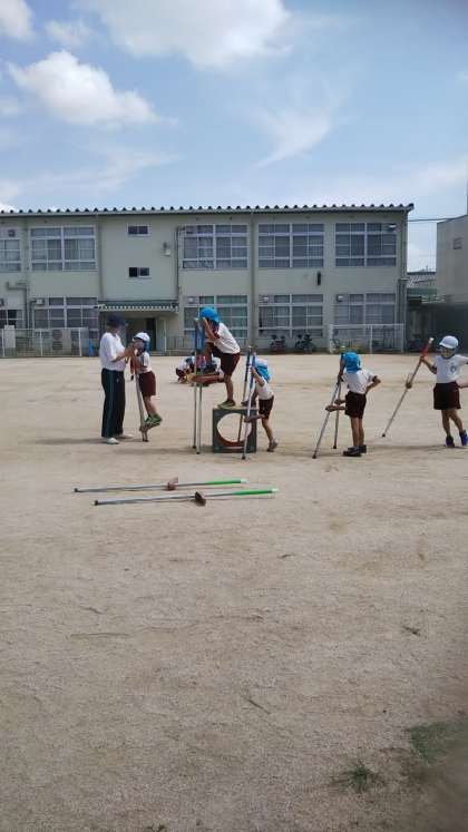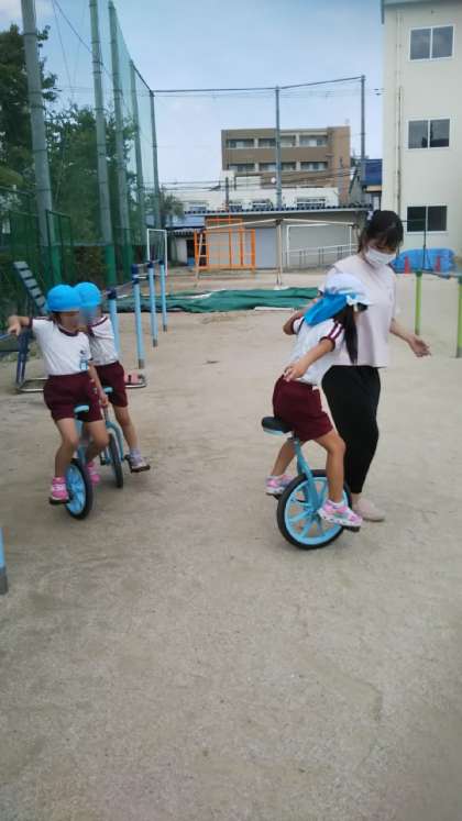 あやめ組は小学校の校庭で竹馬や一輪車、下駄にチャレンジです。繰り返し頑張っていました!