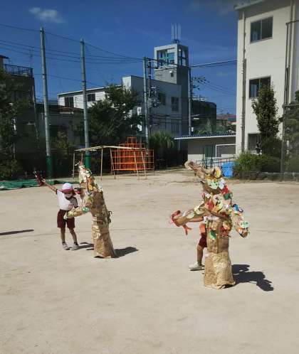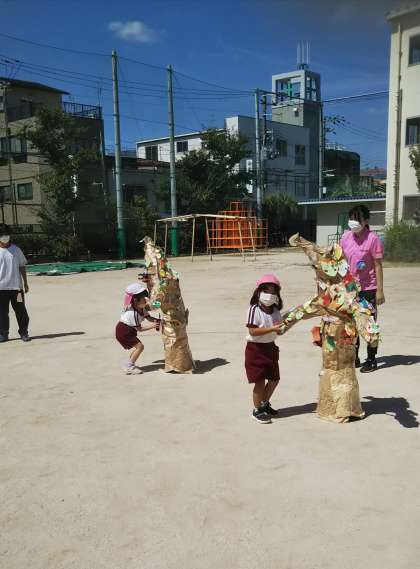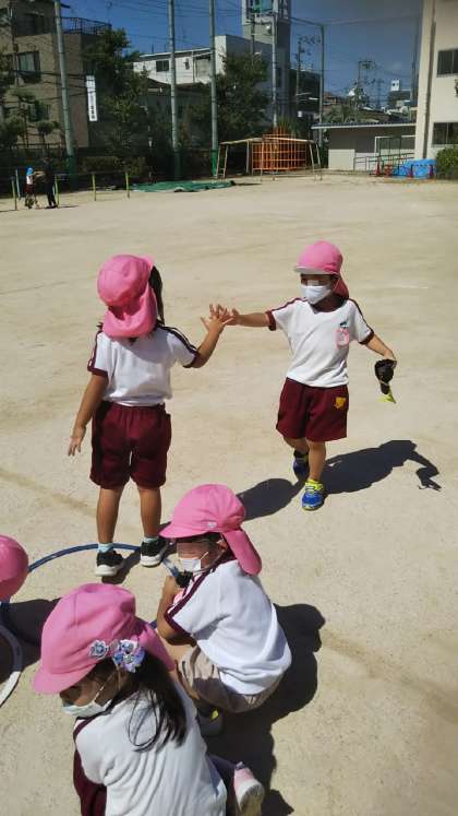 さくら組は大きな木に向かってよーいどん!嬉しそうに何かをもっていますね?運動会のお楽しみ♪頑張っています☆