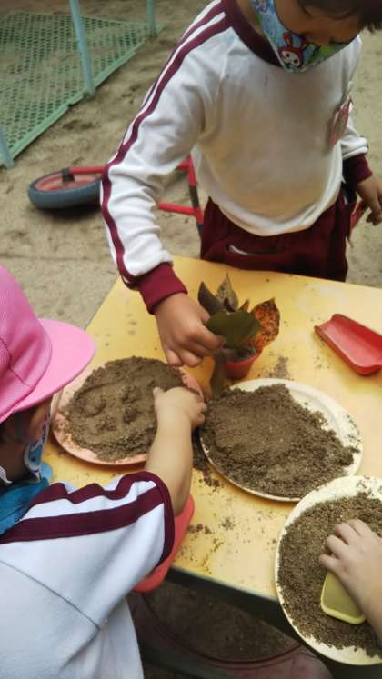 葉っぱのごちそう 公開日 2022/09/20 更新日 2022/09/20 子どもの生活 さくら組が砂場でごちそう作り☆きれいな葉っぱを見つけて飾っていました。 秋のごちそうができましたね。 いいね(0)