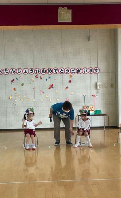 今日は9月生まれのお友達の誕生日会でした。今月生まれはさくら組さんだけでした。少し緊張もしていましたが、しっかり自己紹介もしてみんなにお祝いしてもらいました♪嬉しかったね♪