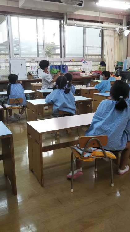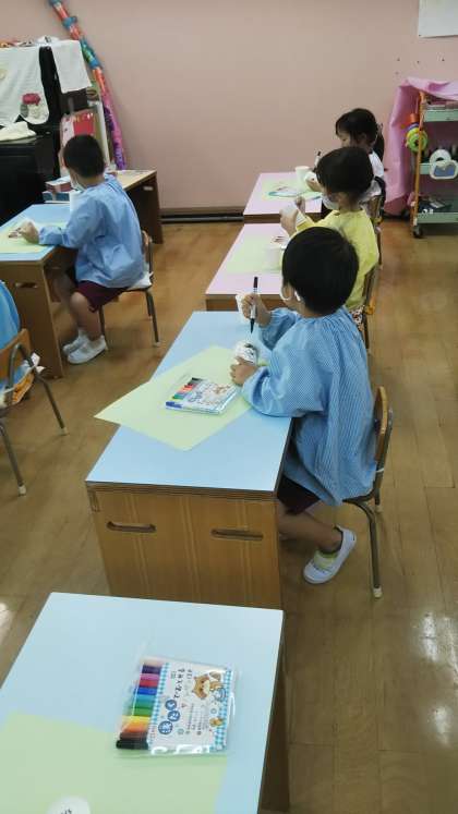 今日はさくら組の実習生さんの部分実習。子どもたちとロケットづくりをしてくれました。「えー?ロケット??」「そんなん作れるのー?」子どもたちも楽しみにしていました。