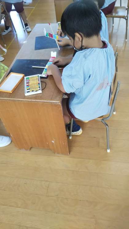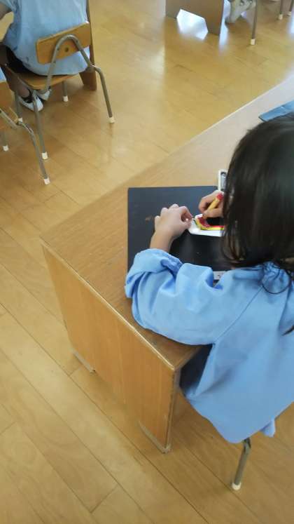 トンボの羽、何色にしようかな?丁寧にぬっていました。