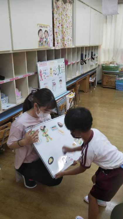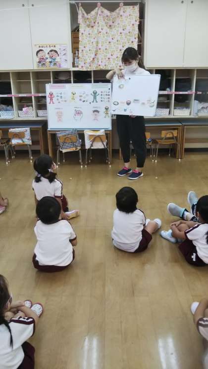 お話を聞いたあと、どんな朝ごはんを食べたら「スーパー食べるんじゃー朝ごはん」になるかをみんなで考えました。