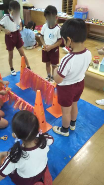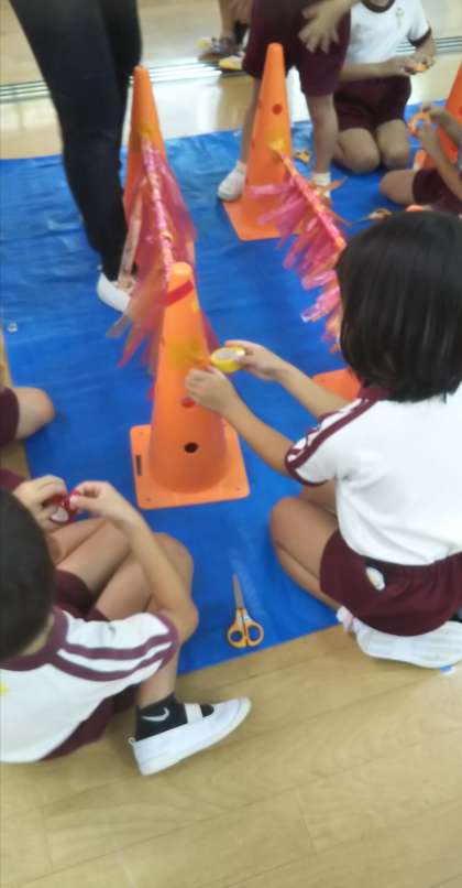 あやめ組が運動会で使う道具を飾り付けていました。さらにイメージがわいてきますね☆