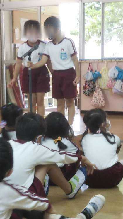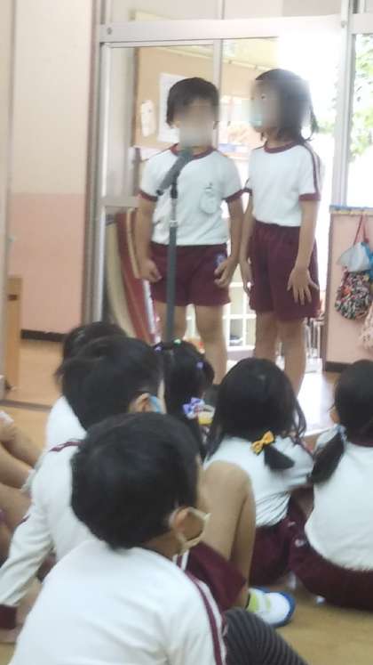 あやめ組が運動会の司会をします。大きな声でしっかりと言ってました!さすがですね♪