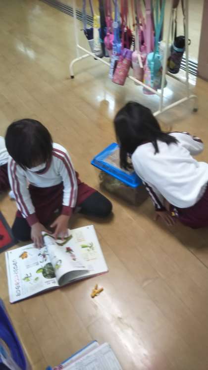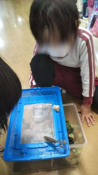 子どもたちに知らせていくと、「なんかコーヒーの泡みたい」と。確かに薄い茶色で似てるかも!?カマキリの絵本と見比べながらよく見ていました。春になったら赤ちゃんカマキリが見られるかな?