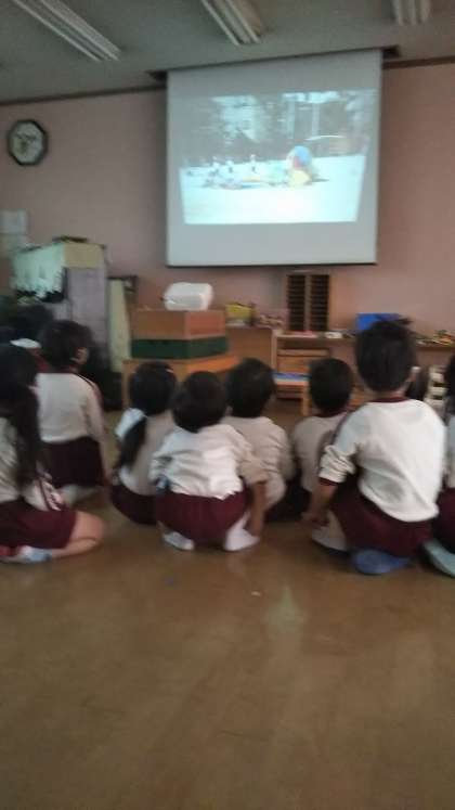 自分達のバルーンの動画をみながら「あーちょっとはやい」「ここはうまくいった!!」と声があがっていました。そのあとどうしたらもっとうまくいくかを話しあっていました!本番、バッチリ決まりますように!!