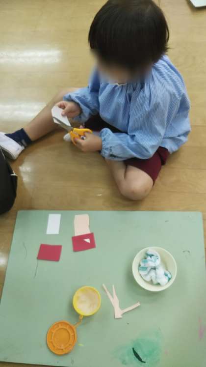 さくら組がキノコを作っていました。「キ、キ、キノコ〜♪」と口ずさみながら可愛いキノコがたくさんできました♪