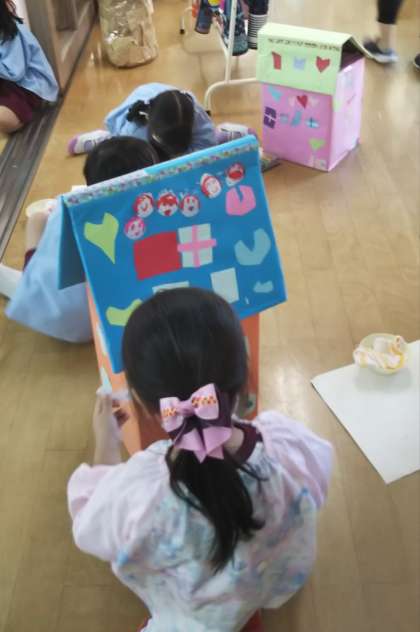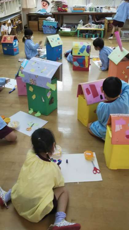 運動会で使ったさくら組のお家を更に可愛くきれいに飾り付け♪