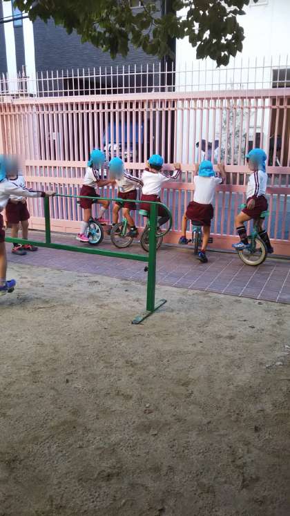今まで一輪車をしていなかった子どもたちも一輪車にチャレンジをはじめました!みんな自分から色々なことに取り組んでいます。がんばれー!!