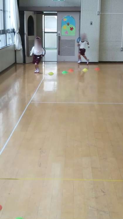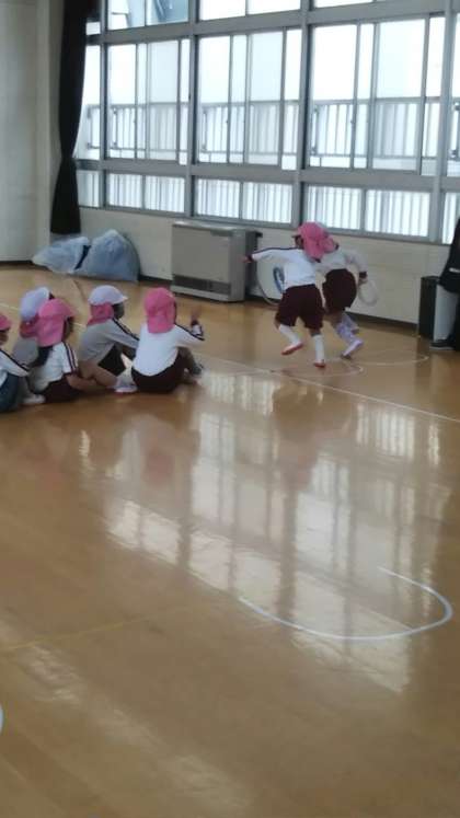 あやめ組のリレーを見て憧れをもったさくら組、遊戯室でリレーです。