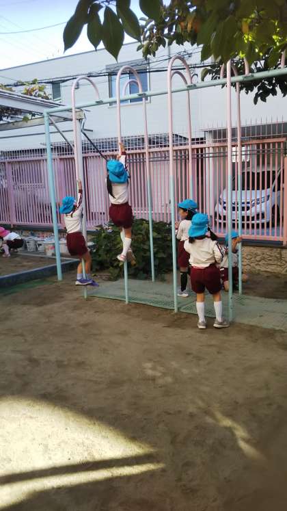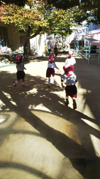 朝はとても寒かったのですが、まだまだ半袖の子どもたちもいます。少しすると園庭には日差しがたっぷり!