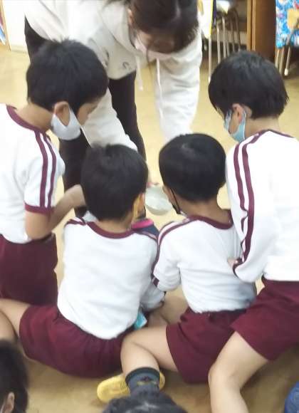 30回すりつぶした方はあっという間にとけたのを見て、子どもたちはよくかんで食べることの大切さを意識していました。