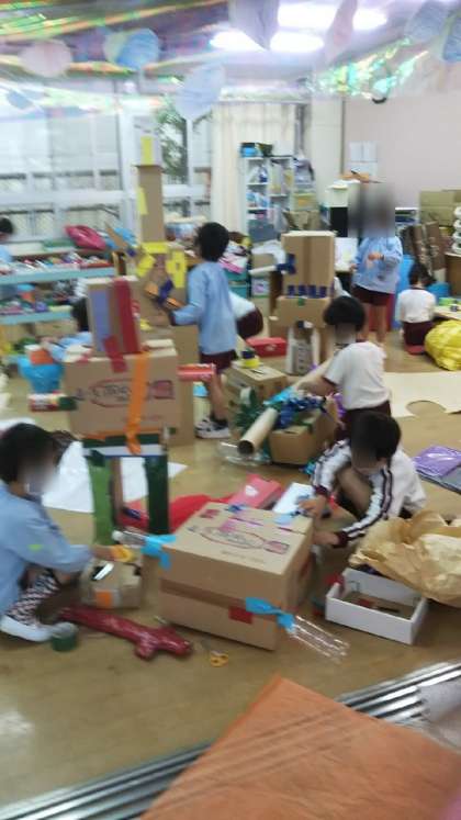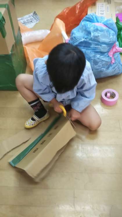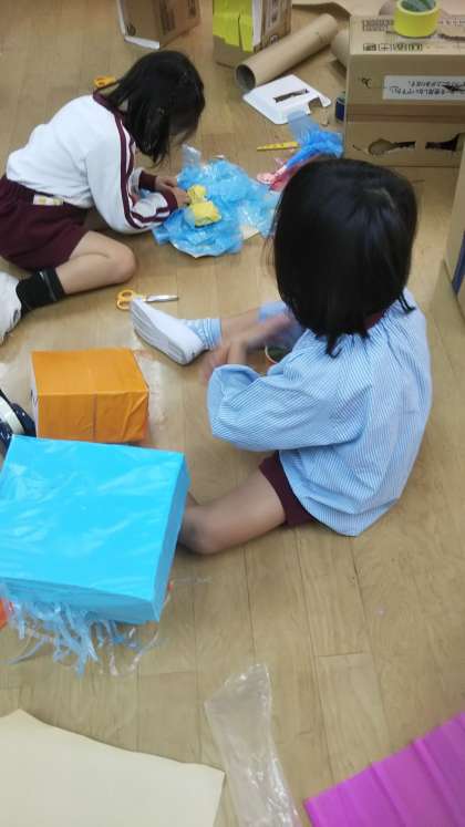 あやめ組も素材製作中…なんだか自分よりも大きいものもあるみたい…?頑張っています。