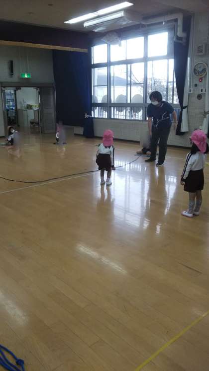 さくら組が縄遊びをしています。今日は長縄にもチャレンジ!!