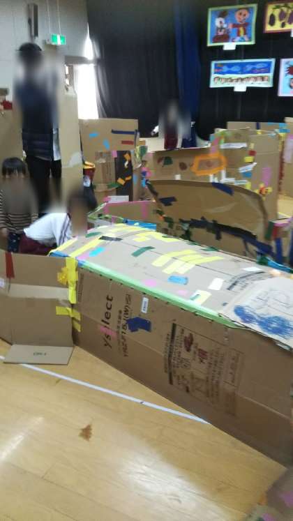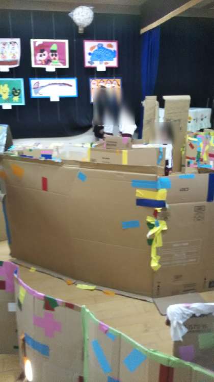 遊戯室には、あやめ組が夏に作った段ボール迷路が復活!