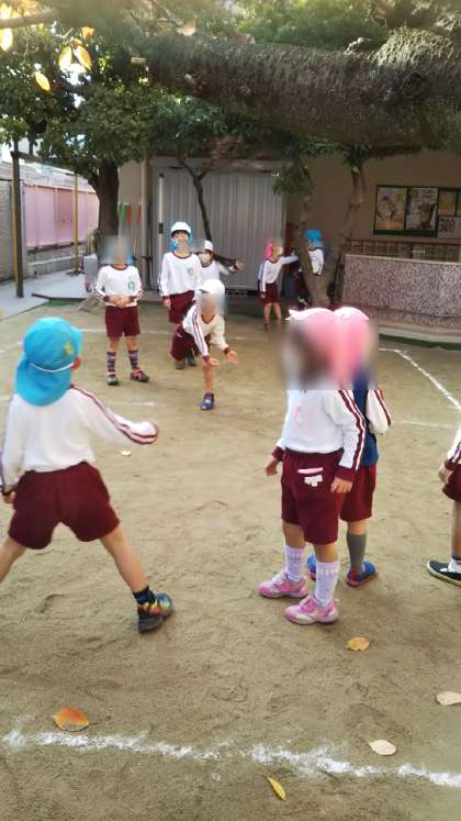 さくら組とあやめ組が一緒にドッジボールをしていました。元気いっぱいかかわりながら楽しんでいました。