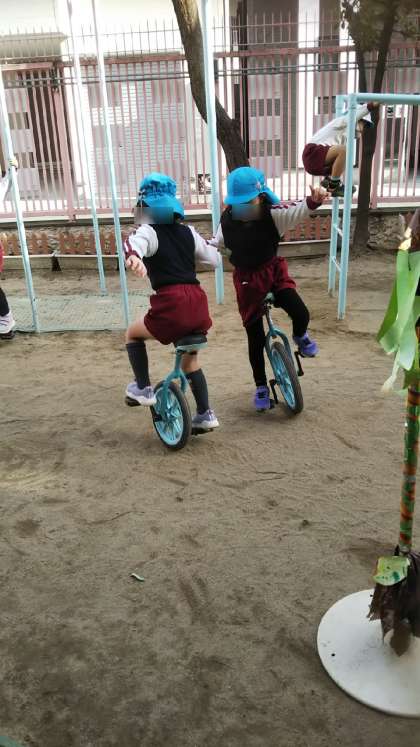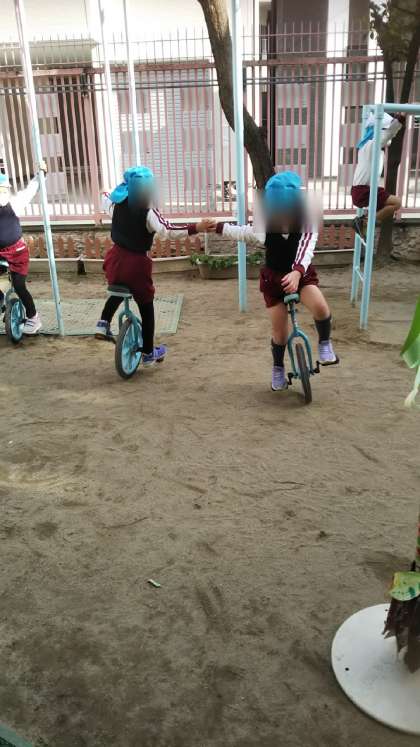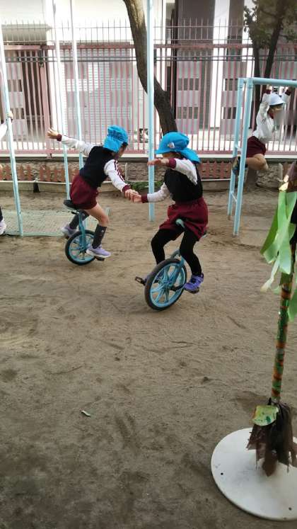 一輪車がどんどん得意になっているあやめ組さん。今日は見事メリーゴーランド成功です!何回もくるくるまわっていました!