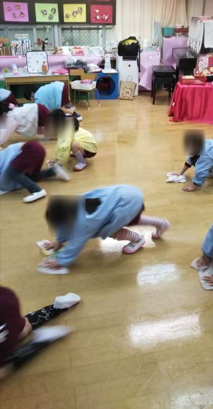明日は終業式。子どもたちが保育室や靴箱の掃除をしていました。