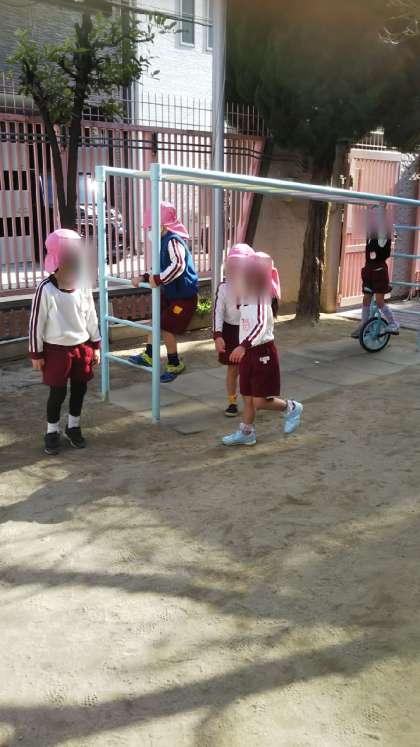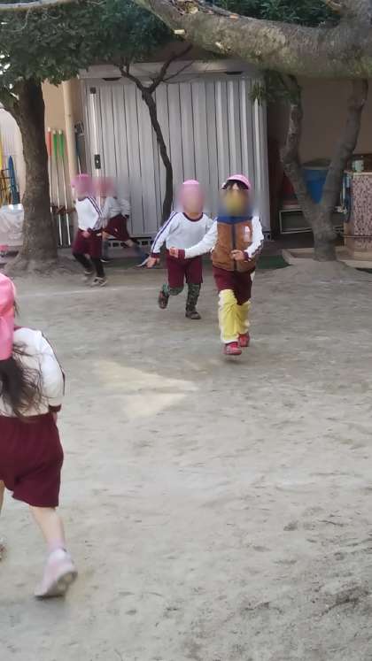朝は少し寒かったけれど幼稚園のお庭はポカポカいい気持ち。さくら組さんが元気に遊んでいました♪
