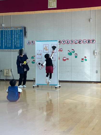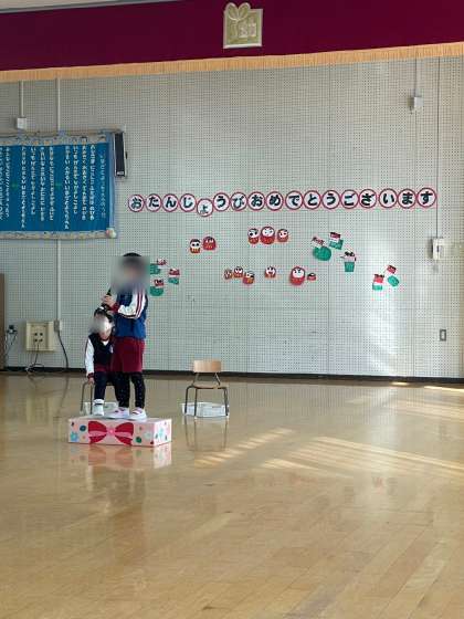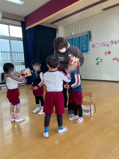 かわいい「ウサギだるま」の冠をもらいました。みんなにお祝いしてもらって嬉しかったね♪1月生まれさんおめでとう!