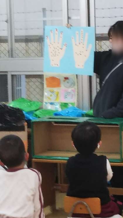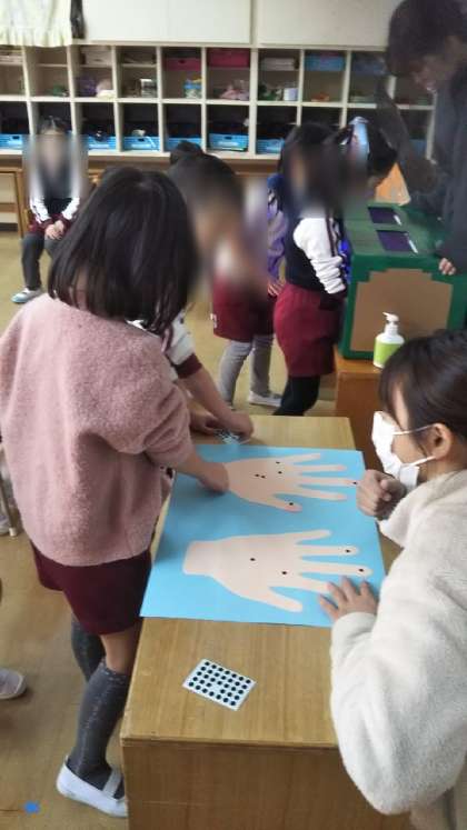 さくら組と同じく手のひらよりも手の甲。指や指の間の洗い残しが多かったですね。手首の洗い残しにも気づきました。意識をしてしっかり洗うようにしましょうね。