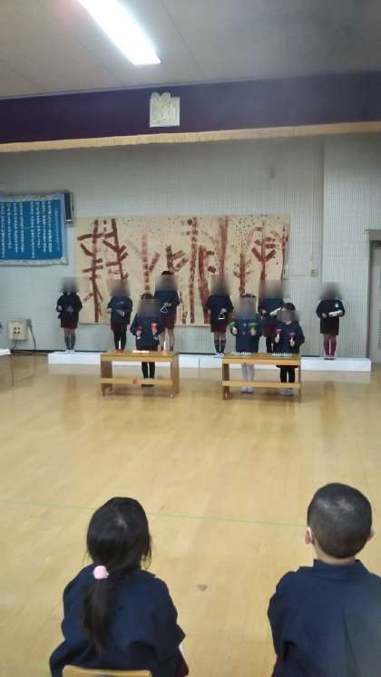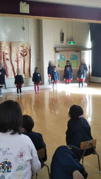 終わった後はお客様のさくら組さんが感想を発表。さくら組さんはなぜか「◯◯くんの鈴かっこよかった」「◯◯ちゃんがすてきだった」…と名指しで発表する子どももいました。あやめ組さんは照れながらも嬉しそうにしていました。