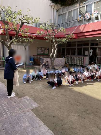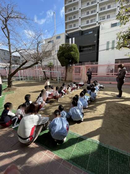 どんなときに避難が必要になるかはわかりません。ベルを聞いて、素早く近くの先生のところに集まること、指示をきいて落ち着いて避難することが大切です。ベルがなったときあやめ組は2階で合奏をしていました。さくら組は製作のためにスモックを着たところでした。突然のベルにびっくりした子どもや、少し怖かった子どももいましたが、みんな静かに落ち着いて避難できました。どんなときでもしっかりと命を守る行動ができるように、これからも色々な形での避難訓練をしていきたいと思います。