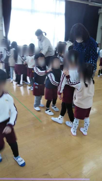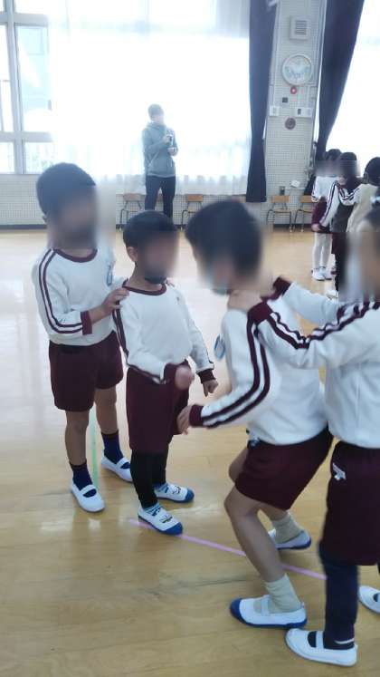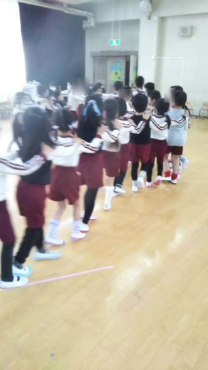 みんなで「かもつれっしゃ」のじゃんけん遊びもしました。どんどんながーくつながって楽しかったね!