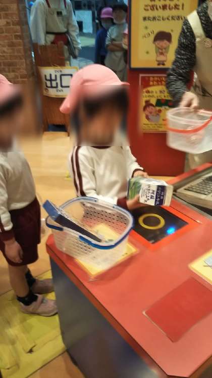 お別れ園外保育でキッズプラザに行きました!さくら組は一番に滑り台。そしてマートでの買い物ごっこを楽しみました。