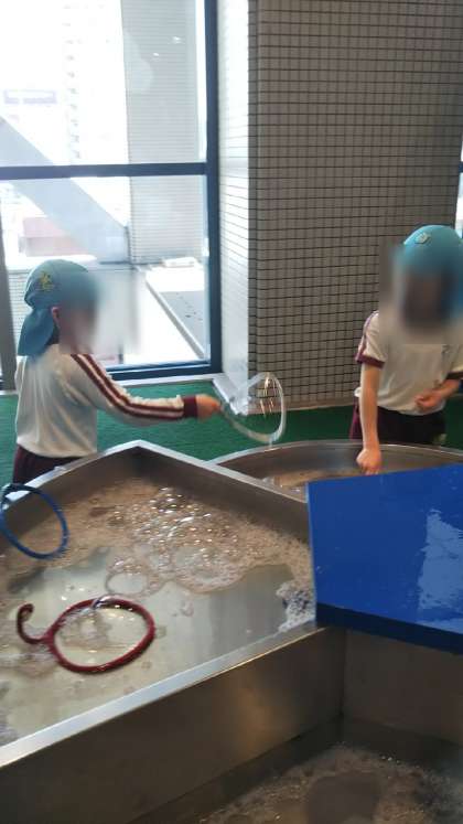 あやめ組はまず、5階でシャボン玉やクイズなどで遊びました。それぞれ興味があるコーナーで楽しんでいました。