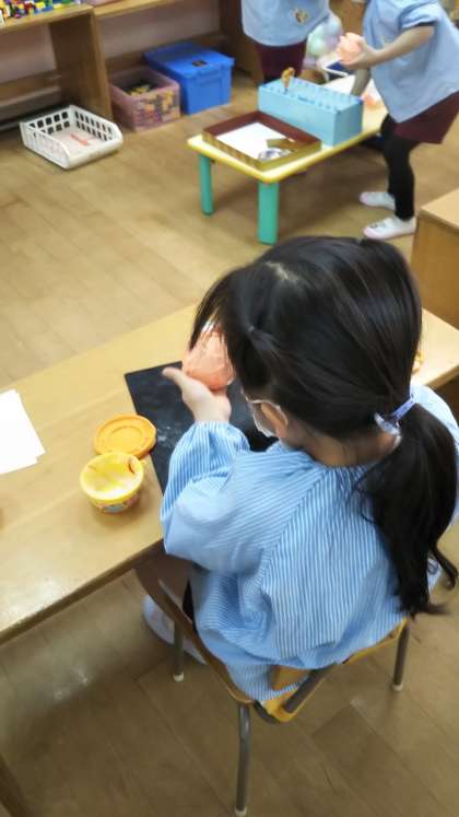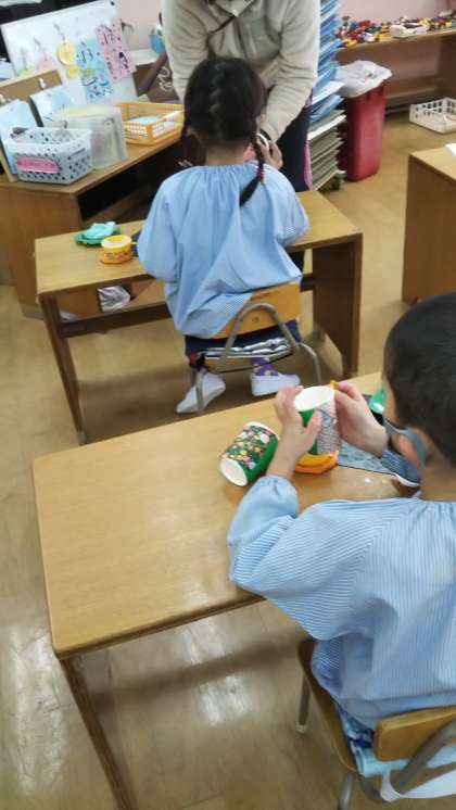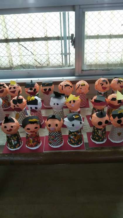 あやめ組がおひなさまを作っていました。まーるいお顔を作ってかわいいおひなさまが並びました♪