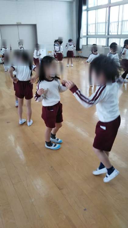 パーティーのはじめは一緒に遊びました。二人組で「大好きツイスト」や「二人でできること」をしたり、みんなで輪になってふれあえる「1、2、3」のなかよし遊びをしました。みんなとっても嬉しそう♪