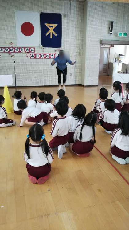 なかよし遊びのあとは「◯×クイズ」幼稚園に関することだけではなく先生チャレンジクイズ…「先生は〜ができる?◯か×か!?」コマやなわとびなど色々な◯×がありました。さあ…正解は!?