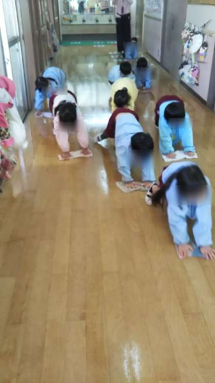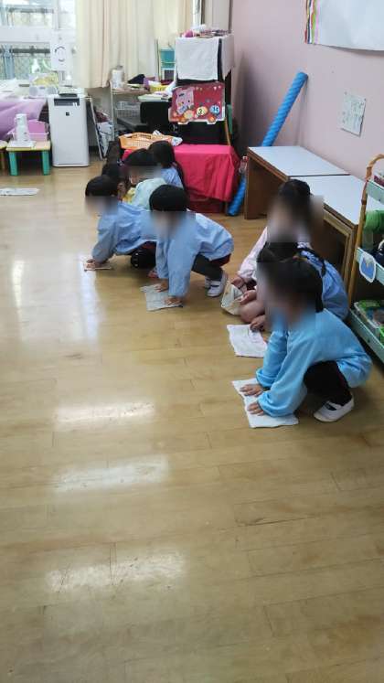 今日はさくら組がお部屋や廊下の拭き掃除をしていました!雑巾がけがとっても得意になってきています。