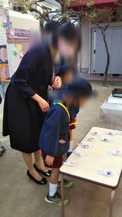 天気もよく、おやすみも0で、修了式を迎えることができました。おうちの方手作りのコサージュをつけてもらい、こどもたちも嬉しそうです。