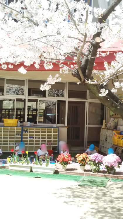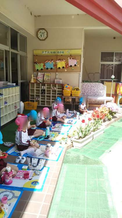 今日もとってもいい天気♪みんなでお花見弁当です。気持ちいいね♪おいしいね!