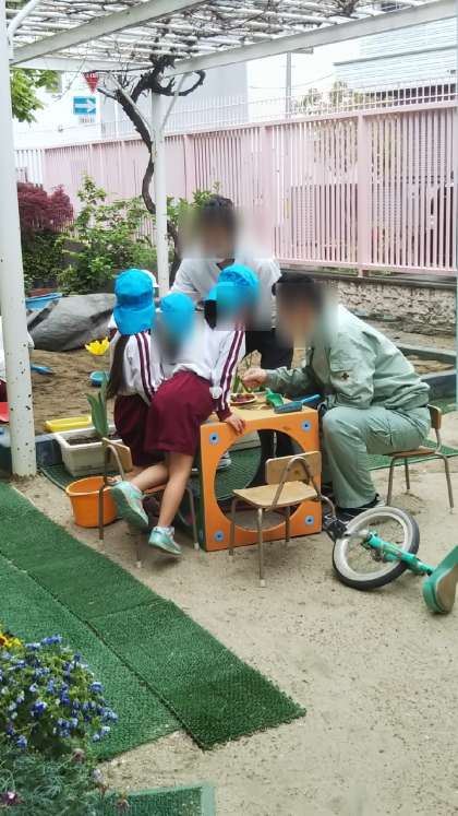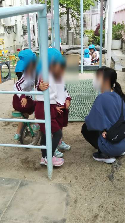 新しい先生たちにも自分たちからどんどん誘い掛けて、一緒に遊んでいました。楽しそう♪