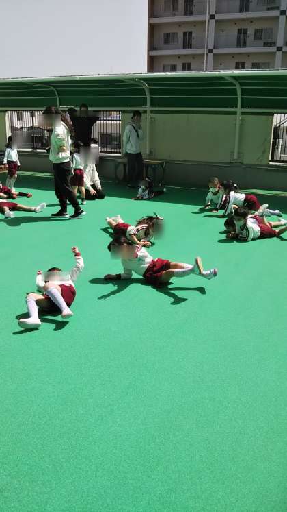 屋上では寝転がったり、ジャンプしたりして思い切り体を動かして遊んでいました!