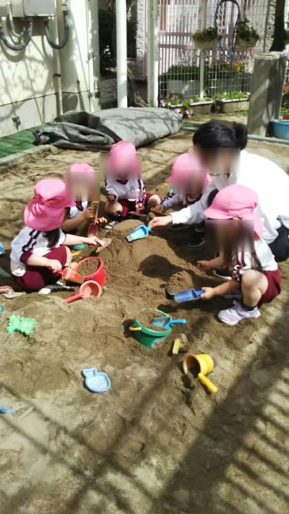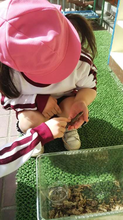今日もみんな元気に遊んでいます。さくら組さん、砂場でお山をつくったり、初めてカナヘビさんともふれあいました。いいお天気で楽しかったね!