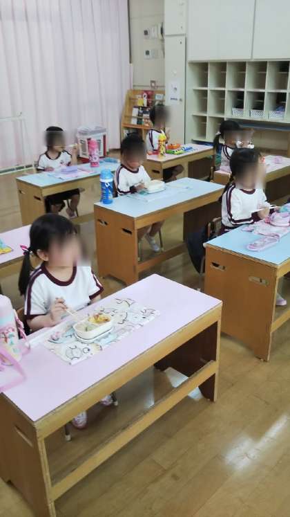 今日からさくら組もお弁当です!はじめてのお弁当にみんなワクワク。はやく食べたい!と楽しみにしていました。